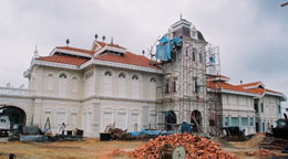 Further down the road from the Royal Palace(Istana Iskandariah) is an older Palace called Istana Hulu built in 1903. Inspired by Victorian architecture, this palace until some 5years or so ago, housed the 'Raja Perempuan Mazwin School' (Mazwin School for Ladies) . A most apt building for a school - A sprawling, somewhat sobering building. One can just picture a solemn school matron, dressed in black, being right at home here - with her disciplining girls in the courtyard for most trivial matters like running in corridors, or being caught whispering in their mother tongue, or for reading romance novels in school. But then the Girls' school moved out and left the palace abandoned until recently. The almost completed restoration work will soon transform the palace into a state muzium called the 'Sultan Azlan Shah Museum'. In it you will be able to find some of Puan Azizah's tekat embroidery displayed proudly.