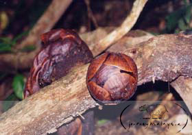 These are rafflesia buds, becoming extremely rare as they are harvested by the orang asli and sold to villages for a mere few ringgit. The locals boil it to remedy the womb. |