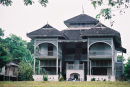 Just outside the gates of the museum is a lonely tree. Not a big 'WOW' but a significant tree that changed the course of Malaysia's economy in the early 1900's. This is a rubber tree and one of two of the oldest rubber trees in Peninsula that have survived the years. Sir Hugh Low, the British Resident of Perak of that time, encouraged the growth of rubber trees as the car industry expanded rapidly in the west. Soon jungles were converted into plantations, and many areas that were once virgin forests were open for commercial use. Hugh Low planted a number of rubber trees in his garden in Kuala Kangsar. Another old rubber tree from those experimental days stands by the district office in town at the intersection of Jalan Raja Chulan and Jalan Tun Abdul Razak. However, the trees don't look too well, perhaps having been hemmed in by the expansion of roads and tarring of the ground around it.