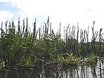 Screwpines are locally known as rasau. The Semelai people use its leaves for weaving into mats, baskets, and food containers. This has helped manage the spread of the screwpines. Now, however, they have found that replacing the rasau leaves with mengkuang leaves, another type of the Pandanus sp., is much less hard work for them and just as good. They no longer harvest the rasau leaves on the lake as Mengkuang can be found growing wild on land. With no one harvesting the leaves,the screwpines began to grow at an alarming rate, closing up large areas of the lake, cordoning sections into secluded bays and creating a complicated labyrinth of narrow waterways with lots of dead ends.