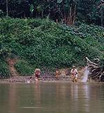 villagers bathing in the river |