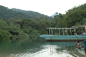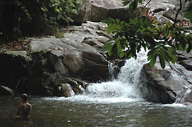 Yan has quite a few place that he may want to share with his guests but not the entire world. When word gets out on Tioman about how pretty and pristine a place is , local authorities make it into a tourist attraction which eventually becomes a tourist dump. So if you really want to work out more than a tan whilst on Tioman - there's a nice little freshwater pool up in the mountains where not many people know about. The trek is not easy though - roughly 45minutes of uphill climb. Markers leading to the pool also disappears parts of the way, so listen out for gushing water and follow in that direction. The river is a good place to observe a bit of Tioman wildlife - snakes, lizards, monkeys, lots of spiders and insects. Take the little green 'free-for-all boat' left there to paddle into the river. Unfortunately, it's a little leaky so you may have to bail water along the way if you don't wish to sink with the boat.