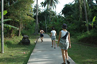 The road to Juara is already open. Using much of an old open path hacked through the jungle during the 2nd World War by the Japanese, this new road connects Juara to the back of Berjaya Resort in Tekek. However, what is a road looks more like a dried up stream. It's bumpy, it's treacherous and it's narrow. When we went again (August 2004), we took the a 4WD jeep for RM35 per person per way. And a wise choice too. Along the way, we saw people falling off their motorbikes and hurting themselves pretty badly. Although there are motorbike 'taxis' for hire at RM25 per person per way, we suggest that you pay a little bit more for a jeep hire. Only thing is that for jeeps, you may have to wait for some time for seats to fill before they leave. Ask around at the jetty for the jeep to Juara or call the owner Kennet at .