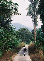 It's a bit of a problem getting to the reserve centre without a car or a bike. It's some distance from Sungkai Village, about 15kms or so through a narrow, dusty road. The road snakes through some lovely old rubber plantations. Most of the way, old rubber trees bend over, stretching to provide a canopy for travellers as the road spears deeper into the heart of Perak. The dangers one must look out for are : logging trucks screeching round corners and the occasional underaged rider wheeling down from the neighbouring orang asli settlement.