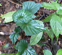 The jungle begonia, a beautiful stunted plant with vibrant tiny pink-white flowers is more than just an ornamental plant. The natives pick its thick leveled leaves to cook with fresh fish. It can also be eaten raw and tastes quite palatable . a little sour , which gives a lovely flavour to the dish.
